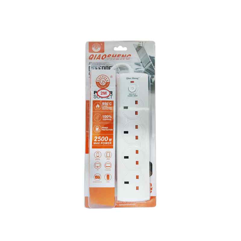 QiaoSheng Πολύπριζο Ασφαλείας με 4 Θύρες και Διακόπτη 2m 2500W