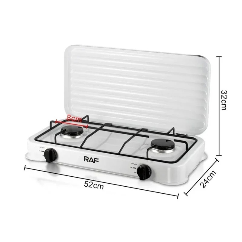 Επιτραπέζια εστία της εταιρείας Raf, με 2 εστίες μαγειρέματος. Ο τύπος της είναι υγραερίου, δηλαδή η φλόγα είναι ορατή και το μάτι περιβάλλεται από ένα μεταλλικό πλαίσιο που στηρίζει το σκεύος. Για να λειτουργήσει απαιτείται σύνδεση με φιάλη υγραερίου. Είναι ιδανική επιλογή για μαγείρεμα στο τηγάνι και ιδιαίτερα για συνταγές που μαγειρεύονται σε τηγάνι wok.